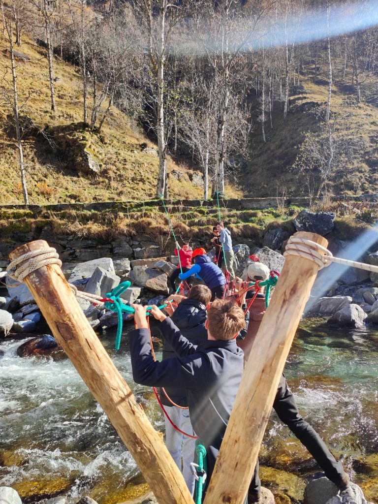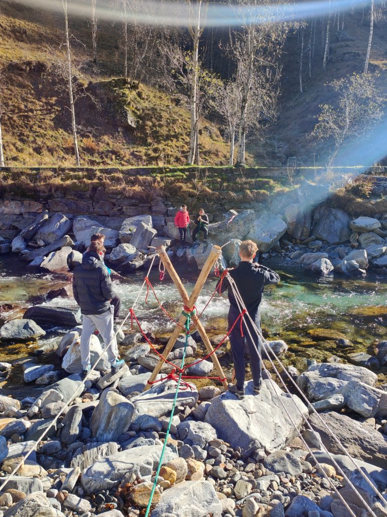 Ospitati dalla Fondazione delle esploratrici della Calanca, i ragazzi hanno vissuto un’esperienza di team building significativa e indimenticabile. Guidati dagli istruttori, si sono cimentati nella costruzione di un ponte di corde sopra il fiume Calancasca.