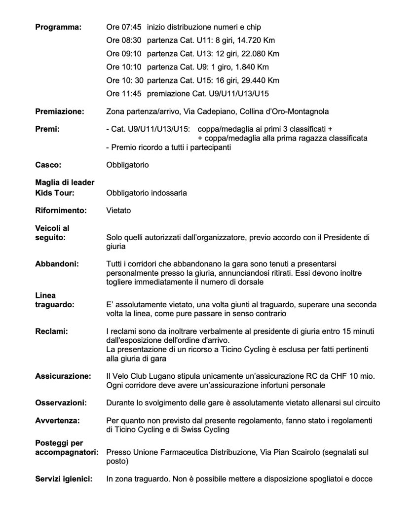 Il 1° settembre torna il circuito del Pian Scairolo, classica gara organizzata dal Velo Club Lugano per ragazzi delle categorie da U9 a U15 nel circuito Kids Tour.